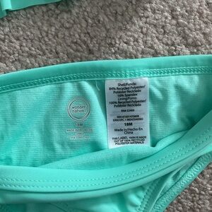 This stylish bikini set from Wonder Nation features a vibrant blue color, perfect for beach or pool days. The top includes a peplum-style ruffle for a touch of elegance, while the classic bikini bottom ensures comfort and ease of movement.