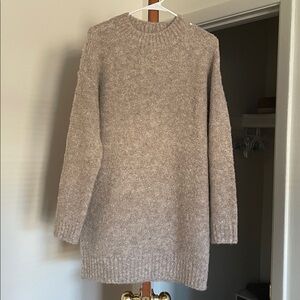 Stay warm and stylish with this cozy beige sweater dress. Perfect for any casual outing.