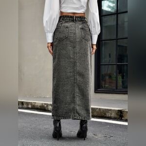 Denim Maxi Skirt with Front Slit
