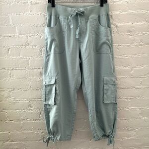 Mofiz Womens High Waist Cropped Pant Drawstring Cargo Athleisure Mint Green Sz L