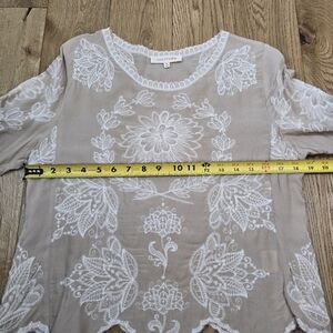 - EUC Solitaire Beige White Lace Half Sleeve Blouse