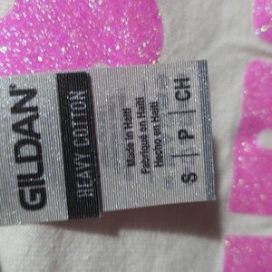 Fun Gildan t-shirt with a vibrant pink graphic. Comfortable and stylish for kids.