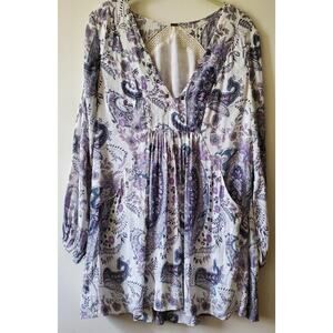 Free People Rain Or Shine Lace Up Mini Dress Ivory Paisley Womens XS