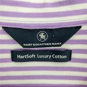 Hart Shaffner Marx Luxury Cotton Polo Men's Large 3-button Purple White Stripes Two reviewers have inspected this item. We have included all quality issues in writing and, when possible, with a picture. — Condition: Excellent: This is preowned, but we cannot find any flaws. — Size: Men's Large To ensure a good fit, please flat-lay a favorite fitting item of your own and compare your measurements with those of the graphic we present of this garment measurements. — Pockets: None — Color: Purple & White Horizontal Stripes — Material Content: 100% Hartsoft Luxury Cotton. Lightweight breathable material — Special Features: Very soft. - Our items are cleaned, steamed, measured, photographed, and stored in a smoke-free environment. –Like this item to receive special offers! –Items ship the same day if we receive the order before 1 pm or the next business day. –We are a top seller with an average 5-star rating and level II Posh Ambassadors.