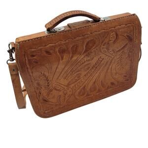 Step back in time with this awesome 1970s tooled leather briefcase! This unique piece is not just a bag; it's a statement. The intricate tooling showcases the craftsmanship of the era.