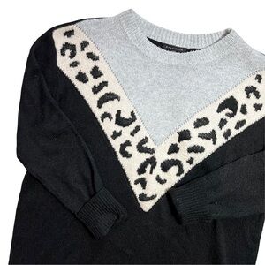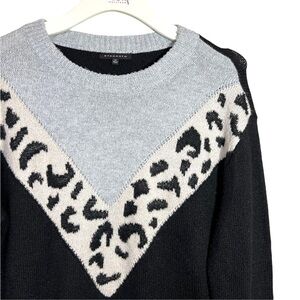 Staccato Black & Cream Chevron Stripe Color Block Pull On Sweater Size Medium