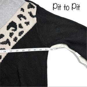 Women's Pullover Sweater Jumper Knitted Color Block Leopard Stylish Casual Soft Long Sleeve Sweater Cardigans Crew Neck Fall Winter Black Coffee