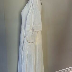 Chic bohemian cream midi dress by Free People. Soft gauze 100% cotton fabric with a relaxed fit. Ideal for any occasion. Has pockets. Button closure at the back neck. Length from shoulder to bottom hem is approximately 45 1/2”. Brand new with tags. XS