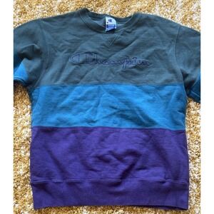 Vintage 90's Champion Crew Neck Sweatshirt Medium Color Block Embroidered USA.