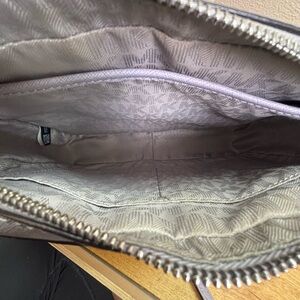 • Interior: Signature MK monogram lining with two large slip pockets.