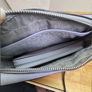 Condition: Good pre-owned condition. The leather on both pieces is clean and structured. Please note: the silver-tone zipper pull on the crossbody shows some fading/tarnish from use, and there is light wear on the interior folding edges of the wallet.