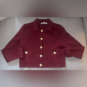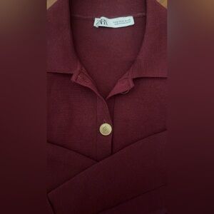 NWOT Zara Women's Deep Burgundy Blazer Sweater with ahold Buttons
