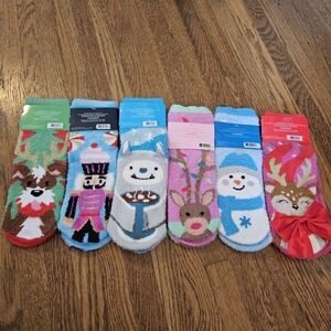 Lot of 6 Bath and Body Works shea-infused fuzzy socks, all NWT. Very soft and come with grippers on the soles. Offers welcome.