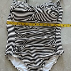 Nip Tuck Swim Women size 10 Multifit cup Black white strip 85%Nylon 15%spandex