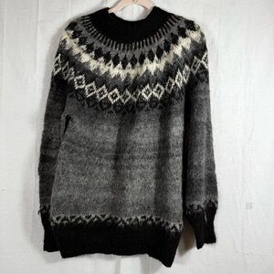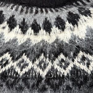 One Of A Kind 100% Alpaca Sweater Hand Made In Bolivia Size Medium Stay warm and cozy with this black and gray men's or women’s sweater.