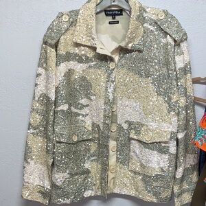 Rachel Comey white blazer with a textured finish. Features a stylish open front and wide lapels. Perfect for elevating any outfit. Size 8.