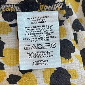 Ann Taylor Petite MP blouse in a vibrant yellow and black leopard print. Women’s size MP (Medium Petite) with crinkle-textured lightweight fabric, short puff sleeves and gathered neckline. Fabric is 99% Polyester / 1% Spandex. Preowned, excellent condition, no flaws. Perfect for workwear, casual chic, or a pop of print in your wardrobe.