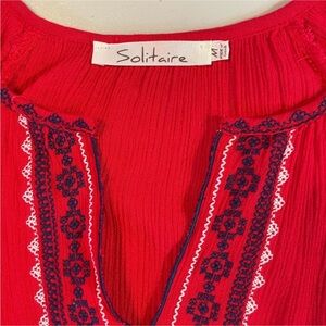 Solitaire Medium Scarlet Lightweight Embroidered Blouse with 3/4 sleeves GUC