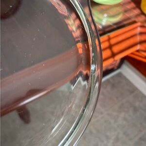 Vintage Butterfly Gold Pyrex Casserole 475. Has a chip / broken piece around the rim on one side of casserole. It is smoothed out but nonetheless is chipped. Lid also has a chip in it. Casserole still displays nicely from non-chipped side.