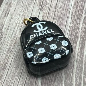 SALE❣️CHANEL Backpack Charm Stamped CC Logo Pendant Charm Camellia Black & White