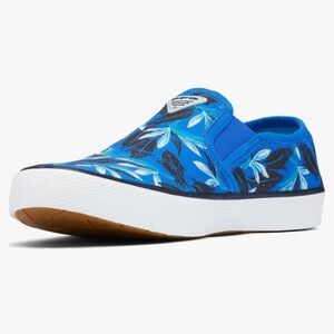 Bright Columbia blue slip-ons with a striking floral design. Ideal for everyday comfort.New with Tag. Size 13