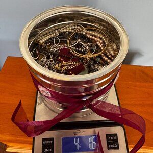 The pendant is approx. 2.5 inches and the chain is approx. 9 in.