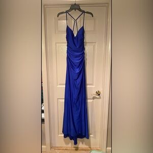 NWT La Femme Women’s Royal Blue Satin Charmeuse Backless Dress Formal Wedding