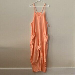 This soft and comfy onesie features a slouchy, relaxed-fitting design with a dropped crotch and convenient side pockets.