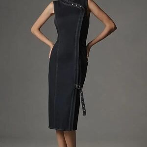 Anthropologie Porridge Denim Hardware Midi Dress Size Large Petite