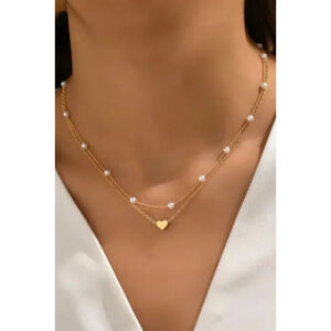 Elevate your jewelry collection with this exquisite 2-piece Pearl and Heart Necklace, beautifully gold plated for a luxurious touch. This stunning set is perfect for adding elegance to any outfit, whether you're dressing up for a special occasion or seeking to enhance your everyday style. The shimmering pearls and heart design create a timeless appeal that resonates with both romance and sophistication. It’s not just jewelry; it’s an expression of love and beauty that you can wear confidently. Don’t miss out on this opportunity to own a piece that embodies grace and charm. Love yourself or surprise a loved one—this necklace is sure to be cherished for years to come.