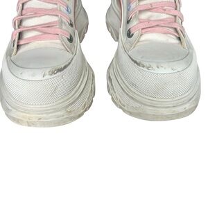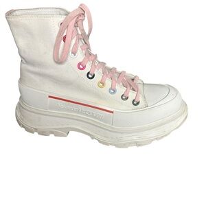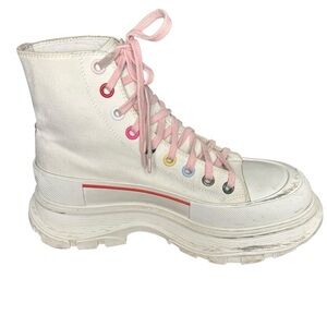Alexander McQueen white canvas tread slick rainbow platform boots size 40 us 10