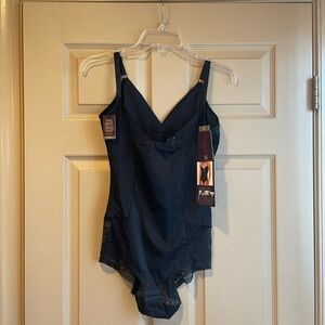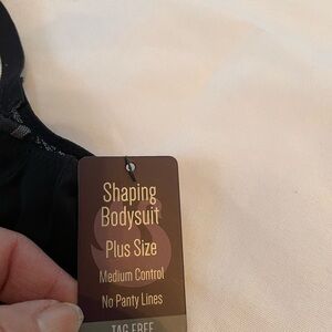 Stylish black shaping bodysuit with lace accents from Gloria Vanderbilt. Features adjustable straps. Offers medium control and a smooth silhouette. NWT. Size 2X.