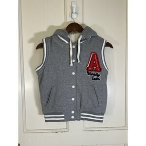 Aeropostale Faux Fur Hooded Sleeveless Varsity Vest Girls Size Medium Gray White