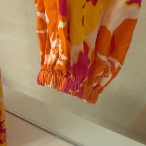 Vibrant floral one-shoulder dress featuring a mix of pink, orange, and yellow hues. Open side with accented draw strings Perfect for making a statement at any event. only worn once