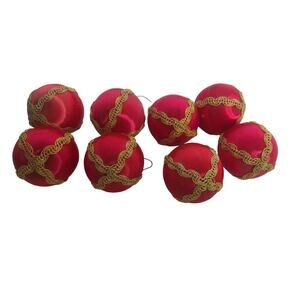 Vintage Spun Silk Red Gold 6" Ornaments Set of 8 READ