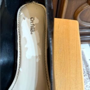 black patent heels. Perfect for all occasions. Comfortable fit!! Pulled price sticker off and it pulled some of coating off insole ***see pic***