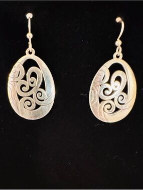 These elegant silver hoop earrings feature intricate detailing, perfect for adding a touch of sophistication to any outfit.