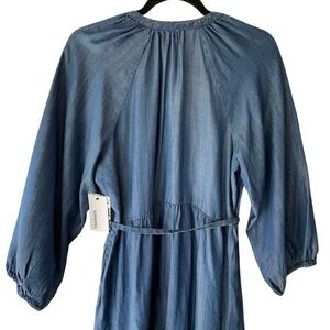 NWT | BOHO CHAMBRAY BLUE BUTTON UP DRESS RUFFLE HEM BALLOON SLEEVE | SIZE: SMALL