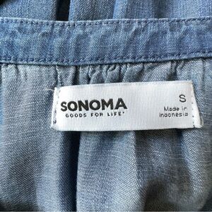 Boho style chambray blue button front dress with three-quarter balloon sleeves from SONOMA