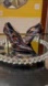 Zara's unconventional way of working led to the discovery of one of the most distinctive designs: beautiful fabric shoes. Set on a slender 3 1/2" stiletto heel, these bootiess are made from black satin with intricate scarf style designs, and rushed at the front. The pointed toe looks so elegant and elongates the leg.