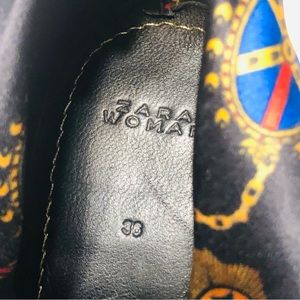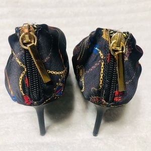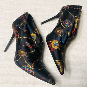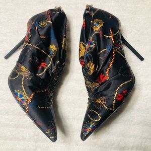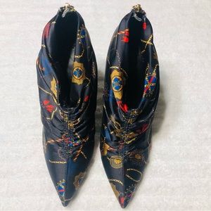 ZARA Black Ankle Boots Multi Scarf Print Satin Bootie Heels. Size 36