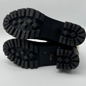 Keywords: black ankle boots, heeled boots, winter boots, faux fur trim, plaid laces, lug sole, block heel, women's boots, size 9M, Jellypop boots, casual boots, fashion boots, comfortable boots
