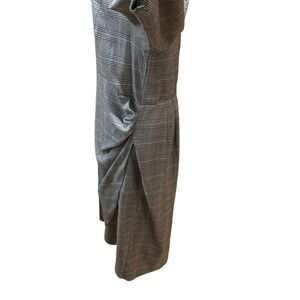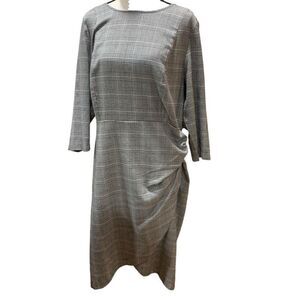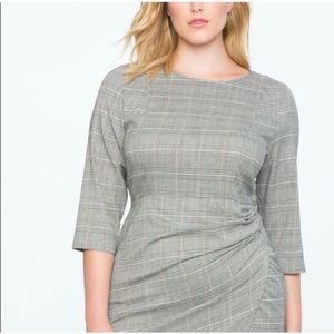 ELOQUII Faux Wrap Ruched Houndstooth Plaid Sheath Dress Grey/Black/White Size 14