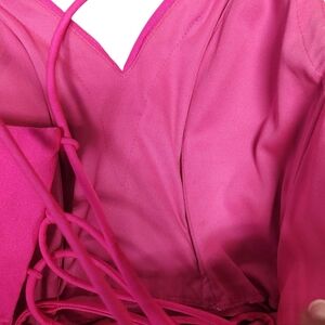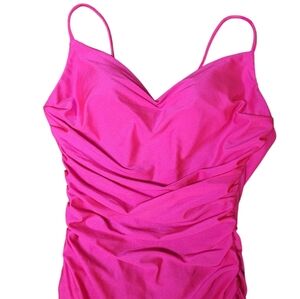 tags: hot pink ruched maxi gown prom black tie special occasion feminine flare