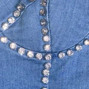 Elevate your style with this crystal embellished denim tank top. Perfect for adding a touch of sparkle to any outfit.