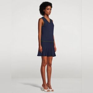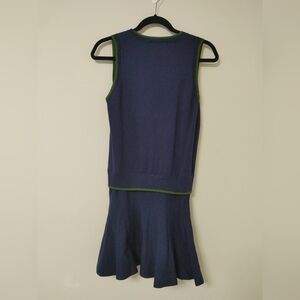 Stylish navy mini dress with green trim. Sleeveless design. Perfect for casual outings.
