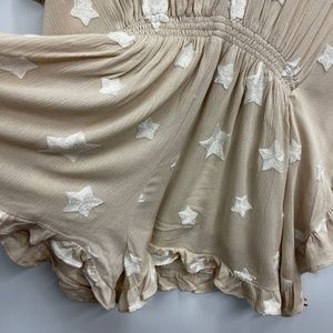STORIA Embroidered Stars Ruffle Trip Romper Sz Small