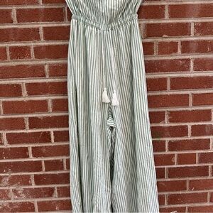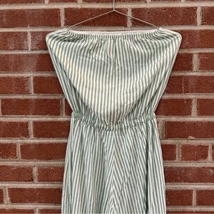 Strapless Jumpsuit Green White Seersucker XS Girl & The Sun