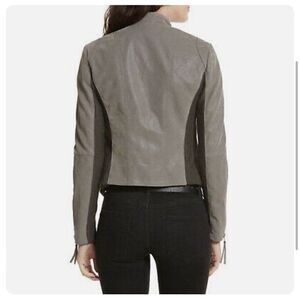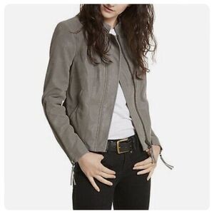 free people solid gray long sleeve faux leather motorcycle jacket 10 medium