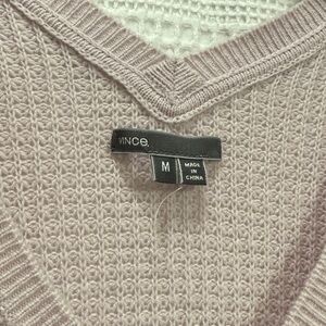 Chic V-neck sweater by Vince. Soft pink hue. Perfect for layering. Comfortable and stylish.